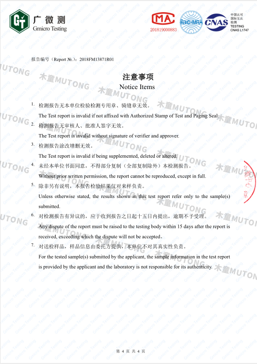 木童家具甲醛清除劑效果檢測報告